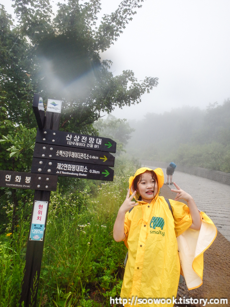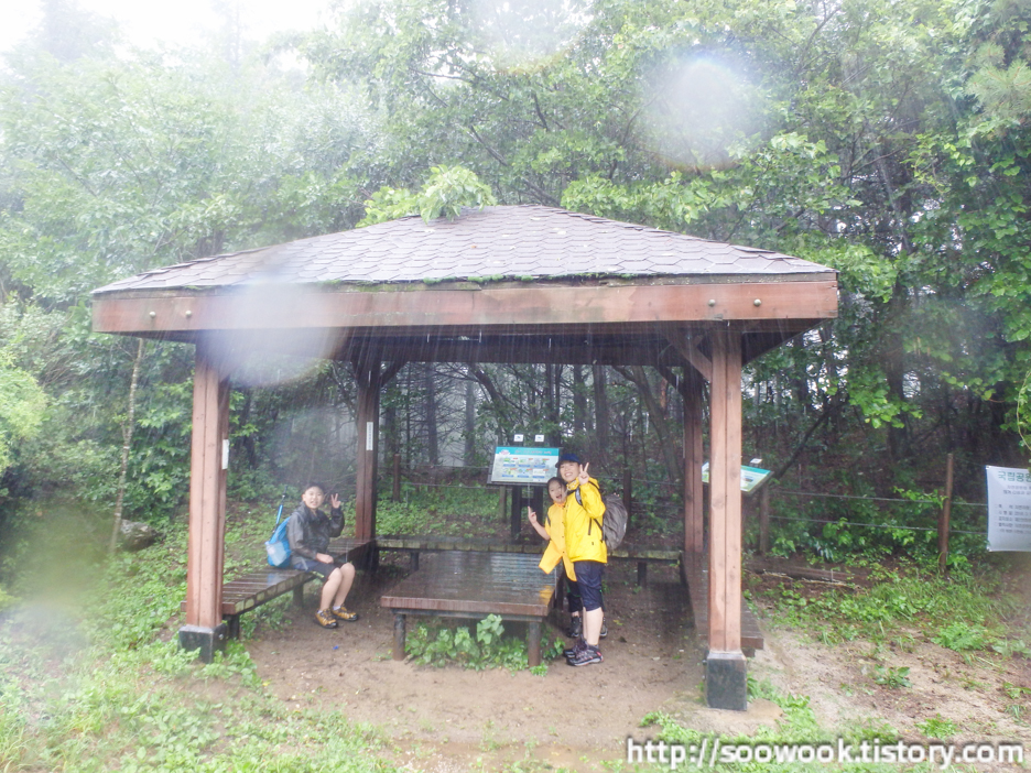 출발할 때는 비가 그다지 많이 오지 않았는데, 죽령 대피소 도착을 하니 비가 대박으로 오고 있었다.
