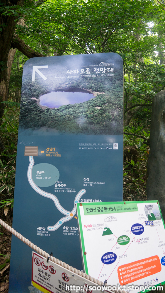 성판악에서 백록담으로 가는 코스는 다음과 같다.
