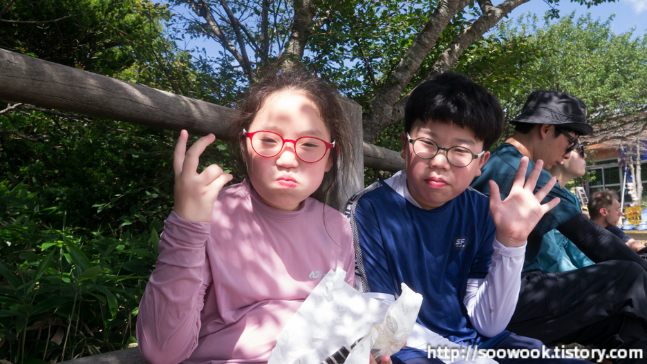 내려가니 좋아하는 어린이들... 이때까지만 해도 좋아했다.