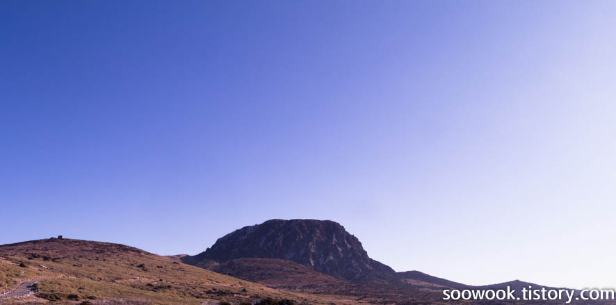 쭈욱 올라가면 갑자기 분지가 나오고 저 멀리 백록담 봉우리가 보인다.