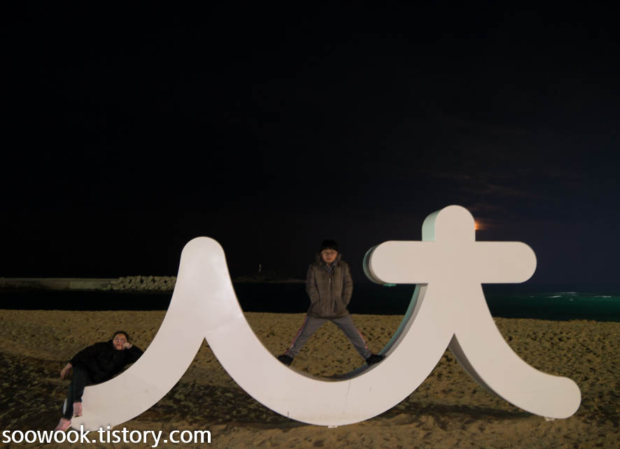 다 먹고 나니 배도 부르고 하늘도 어두워져서 모할까 하다가 속초 해수욕장으로 향했다.