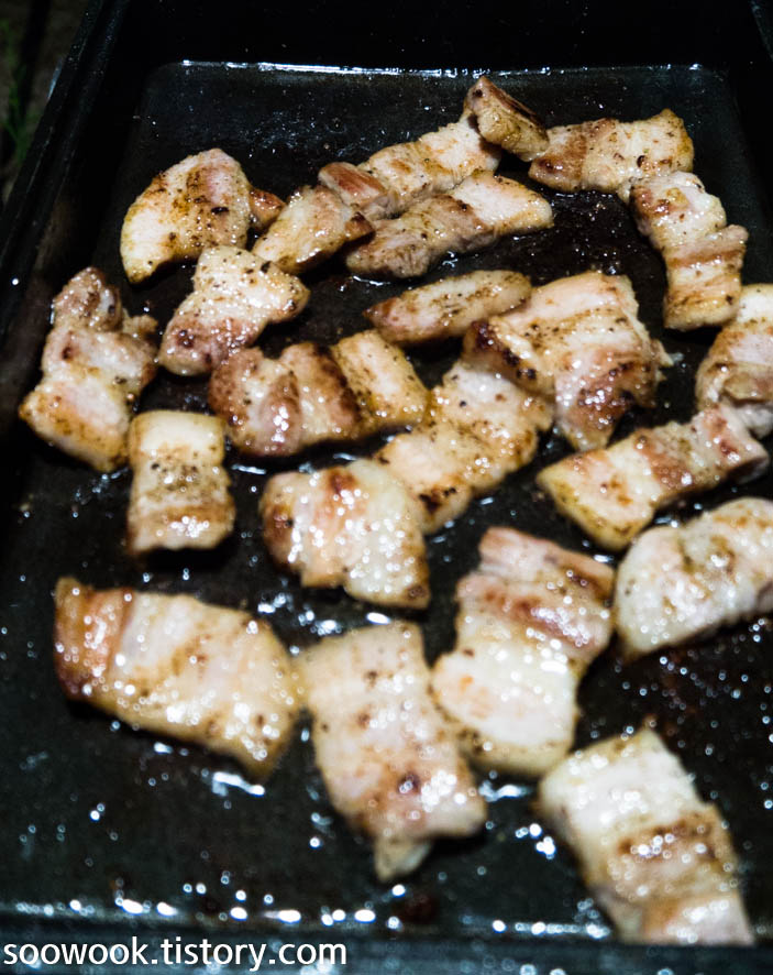 고기를 구워서 밥을 먹었다.