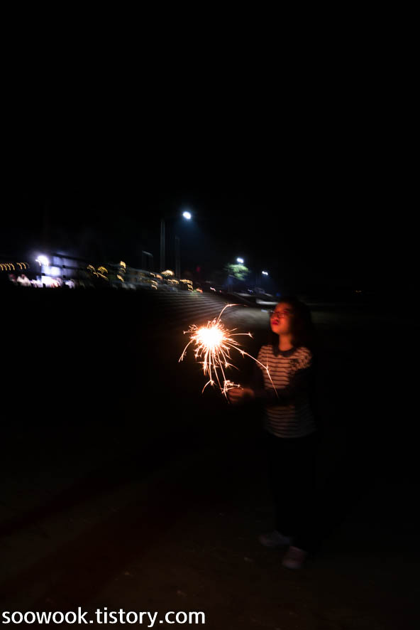 해변은 불꽃놀이를 해줘야 밤바다 해변이다.