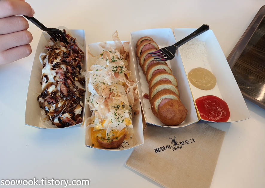 해수욕을 하고 나와서 바람의 핫도그를 먹었다.