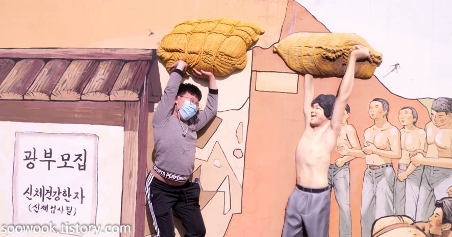 시장 주변에는 예전 탄광 모습을 전시물로 만들어 두었다.