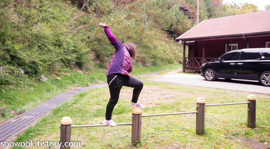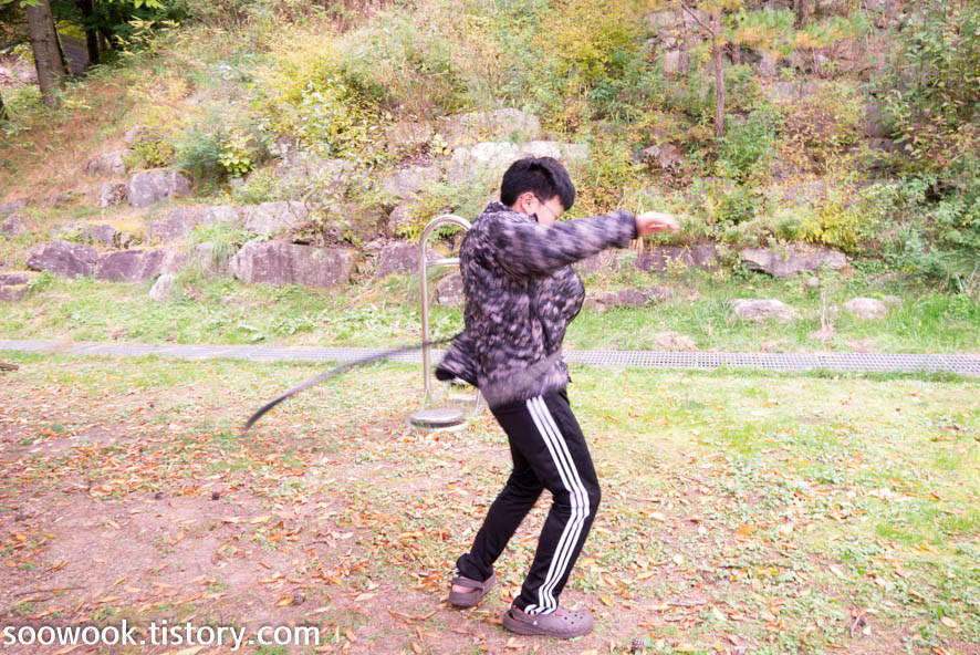 단순한 운동기구에서도 재미있게 논다.
