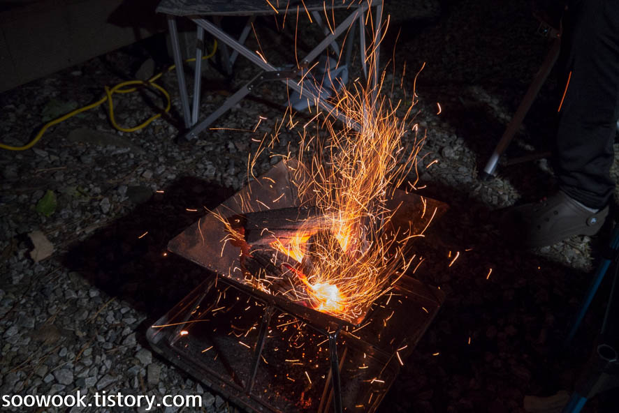 처음 써보는 착화제여서 그런지 불똥이 막 튀었다.