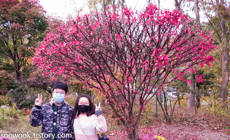 근처에서 국화 분재 전시를 하고 있었다.