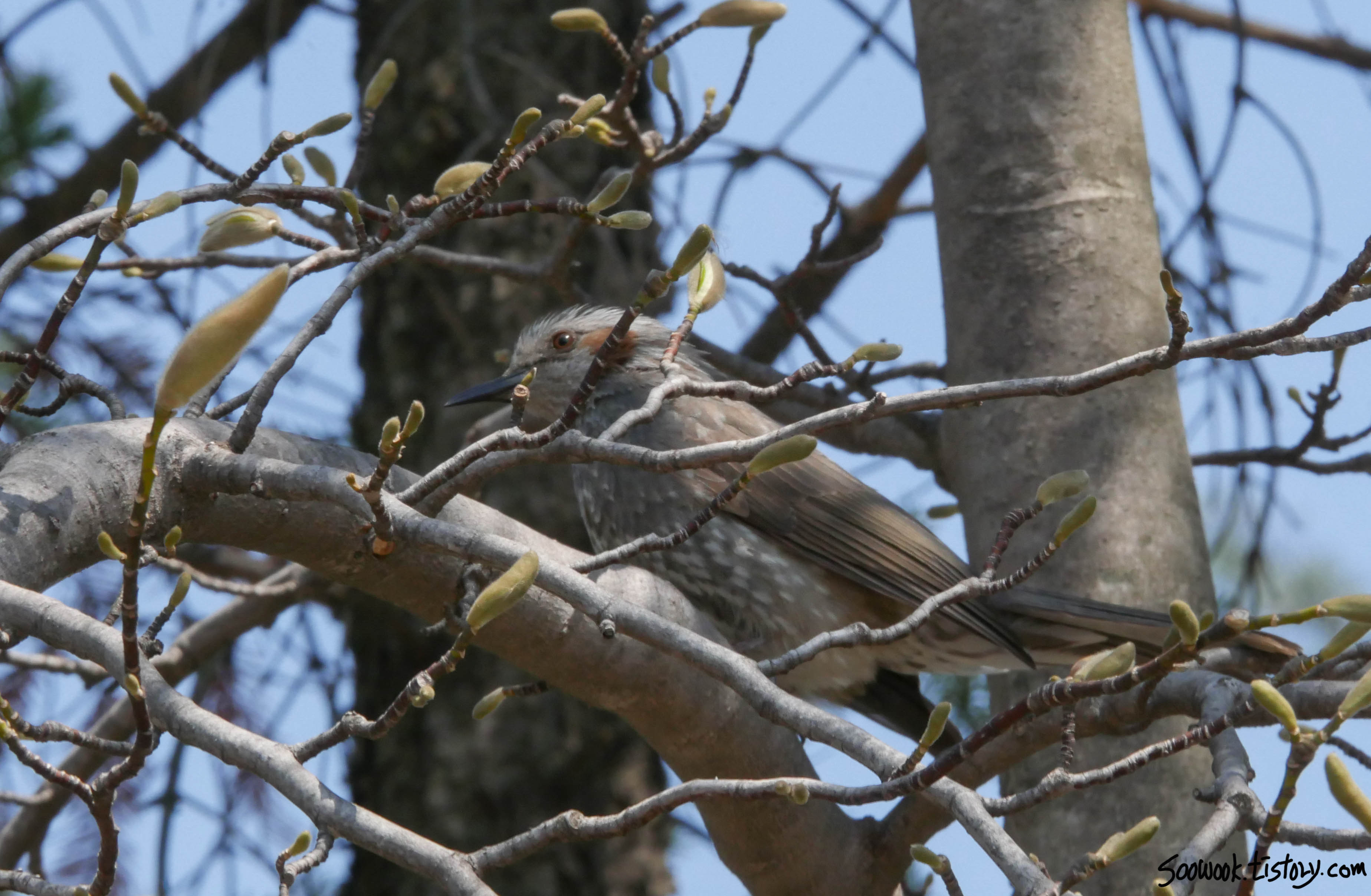목련이 움트트하면서 활짝 필려고 한다.