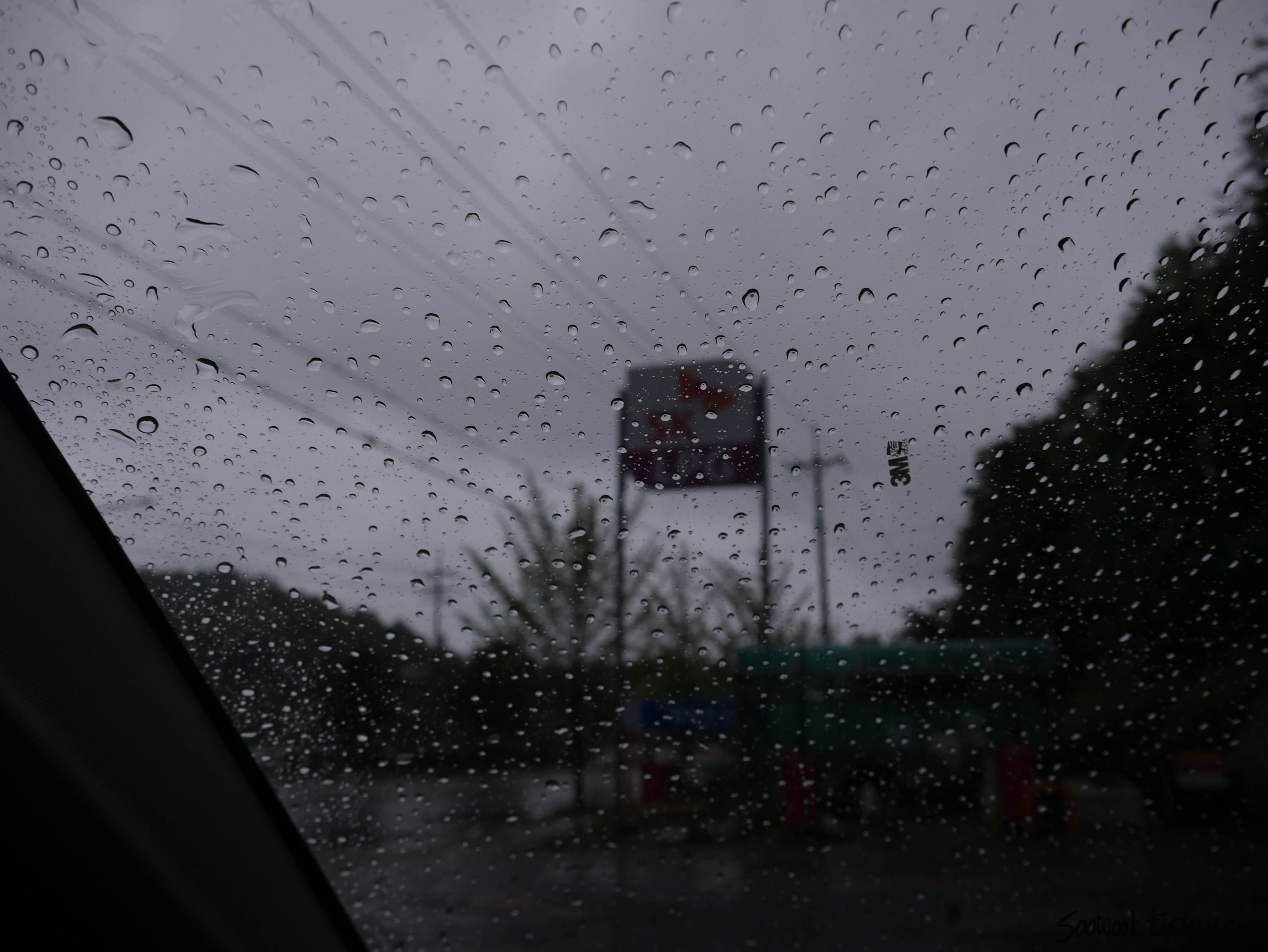 아침에 일어났는데 비가 폭풍우 처럼 오고 있었다.