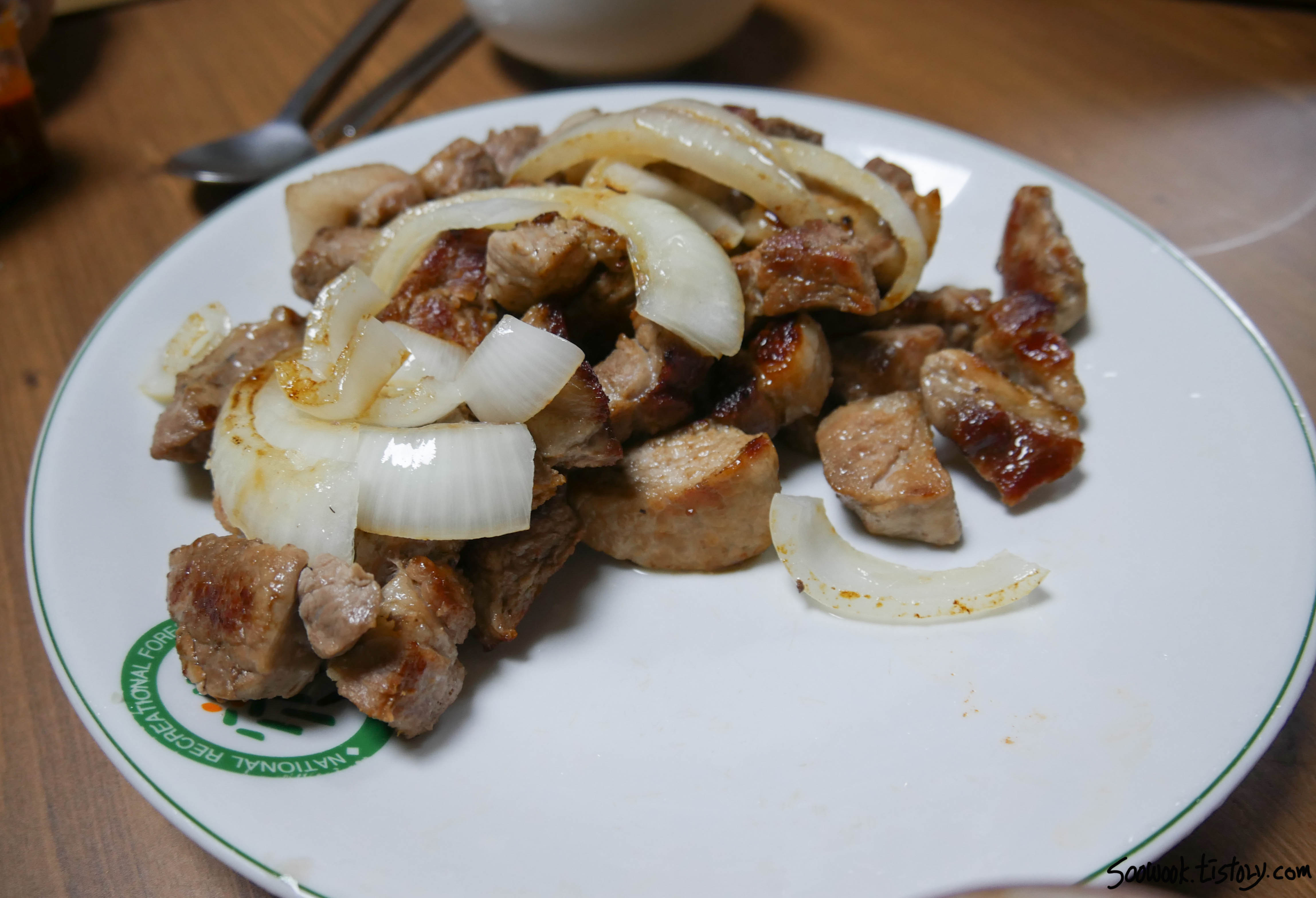 숙소에서는 포장 해온 회와 고기를 구워서 냠냠 먹었다.