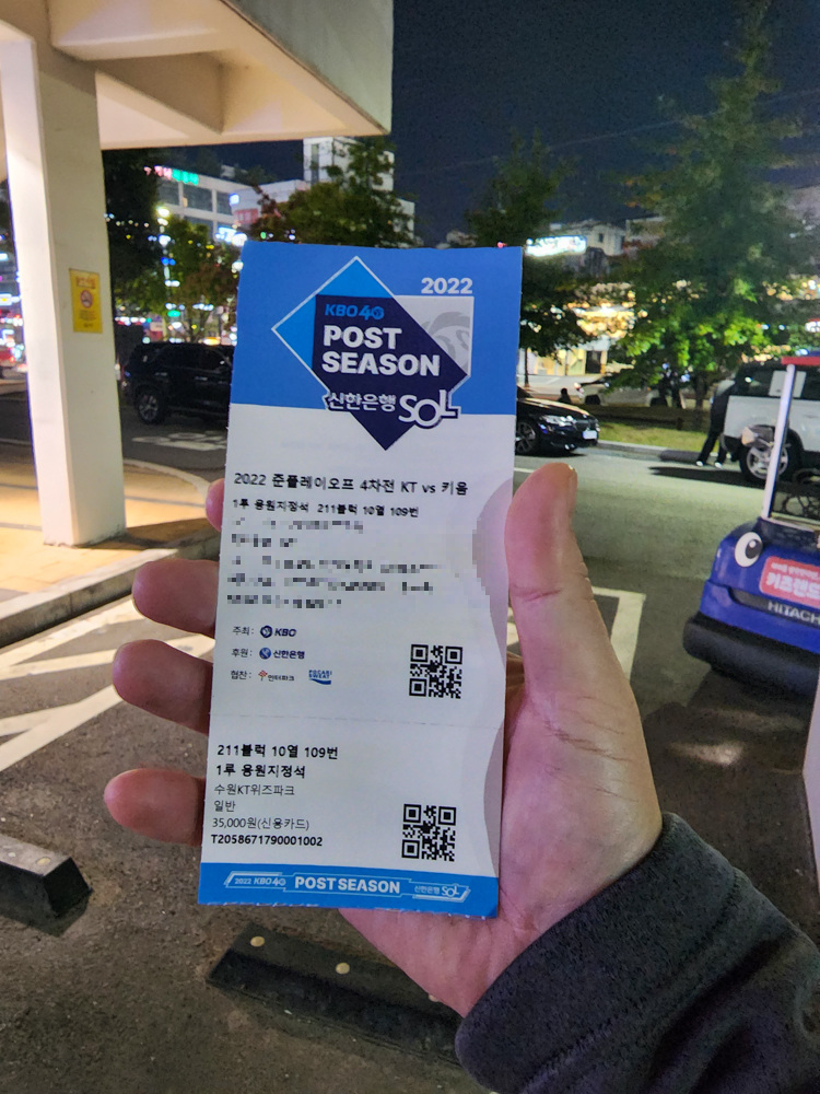 4차전이 올해 마지막 경기일 수도 있다고 생각해서 서둘러 예매를 하고 위즈파크로 갔다.