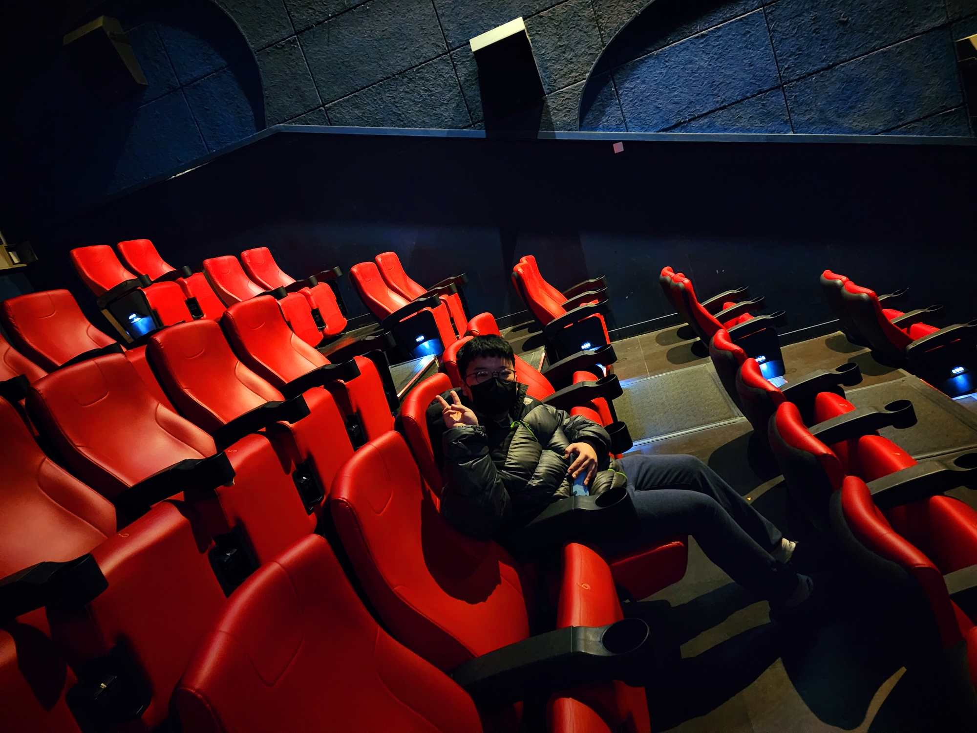 상영관에 일등으로 들어가서 기념 사진도 찍었다.