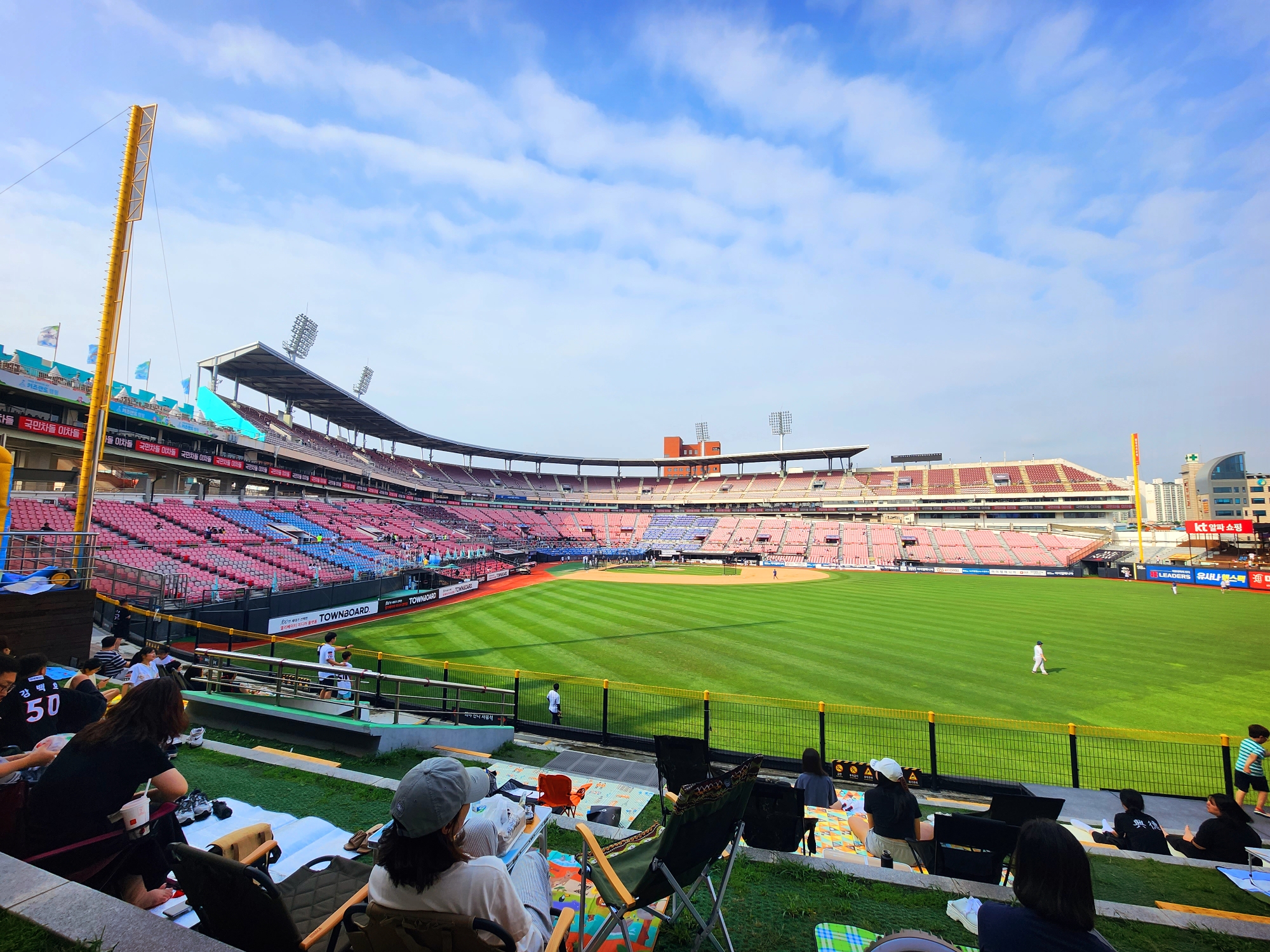 주말에 워페 예매는 실패하고 외야 잔디석에 돗자리 들고 관람 갔다.