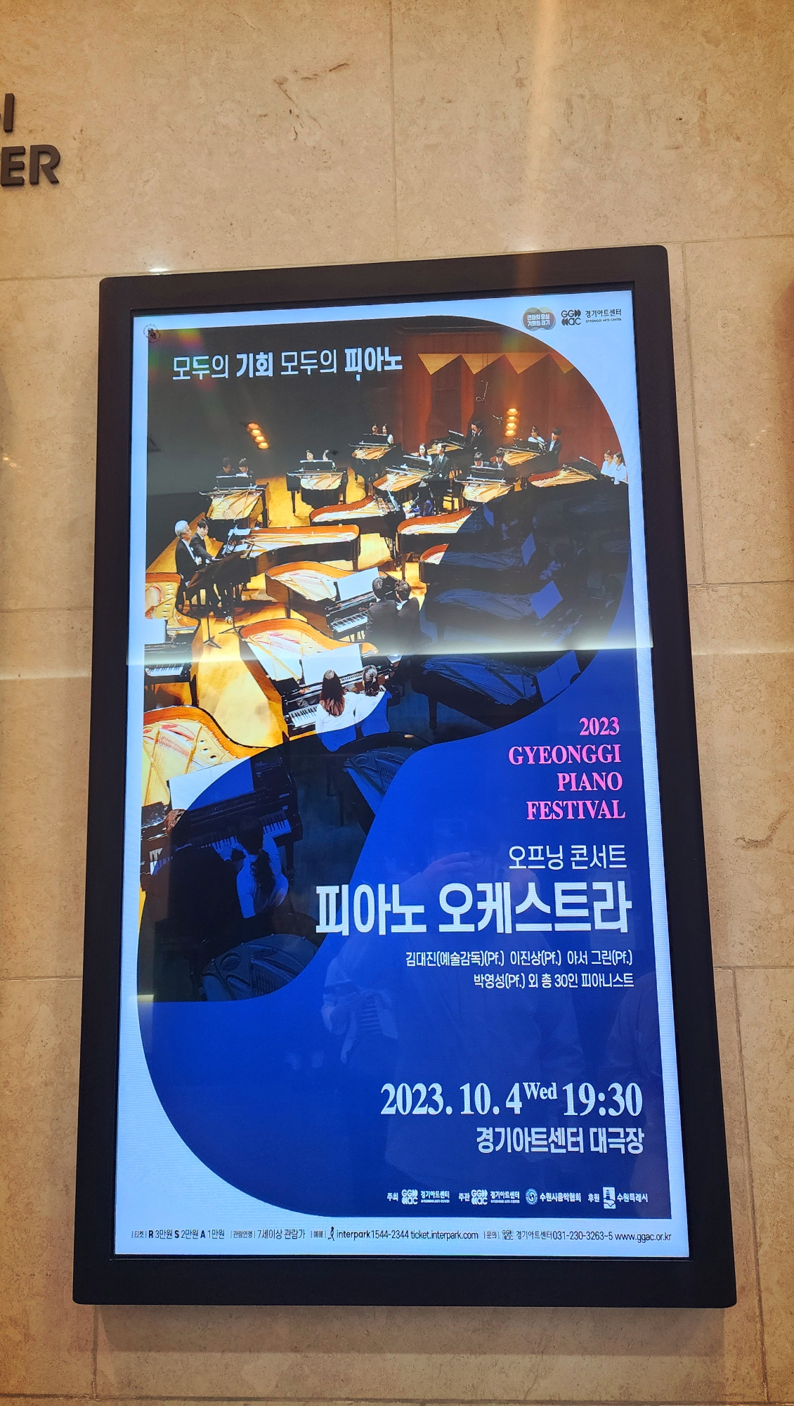 우리가 볼 공연은 경기피아노페스티벌 오프닝 공연으로 피아노 오케스트라 였다.