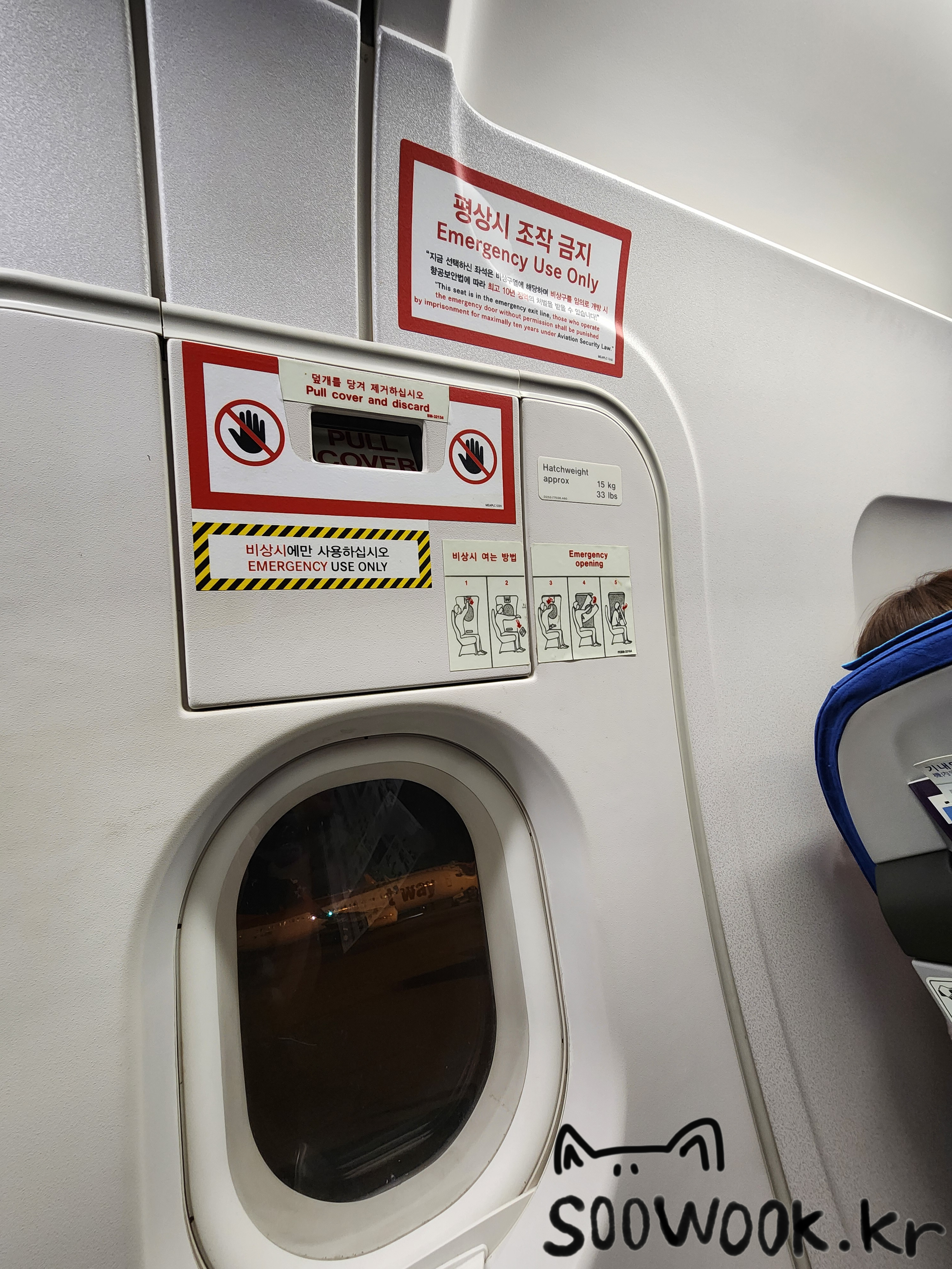 짐 부칠때 비상구 자리로 바꿔주어서 비상구 자리에 착석 했다.