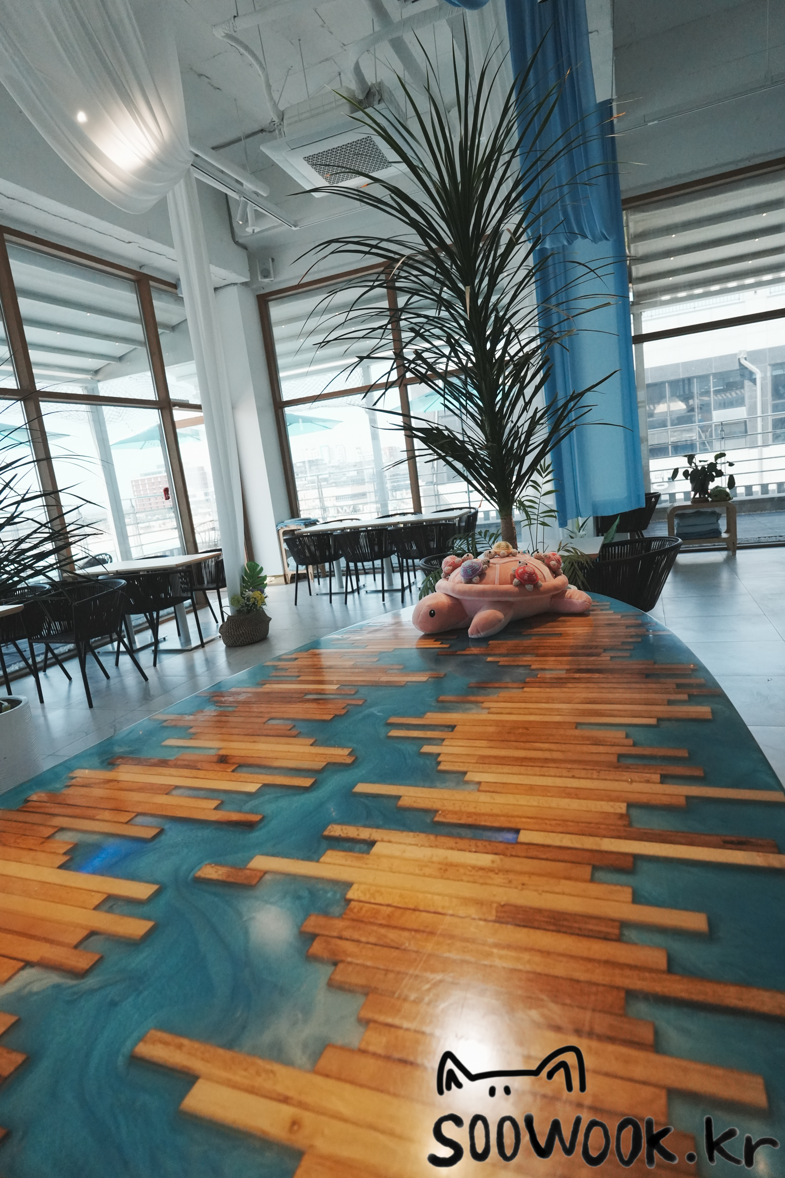 근처에 인공 서핑장이 있어서 근처 전망이 보이는 카페로 방문했다.