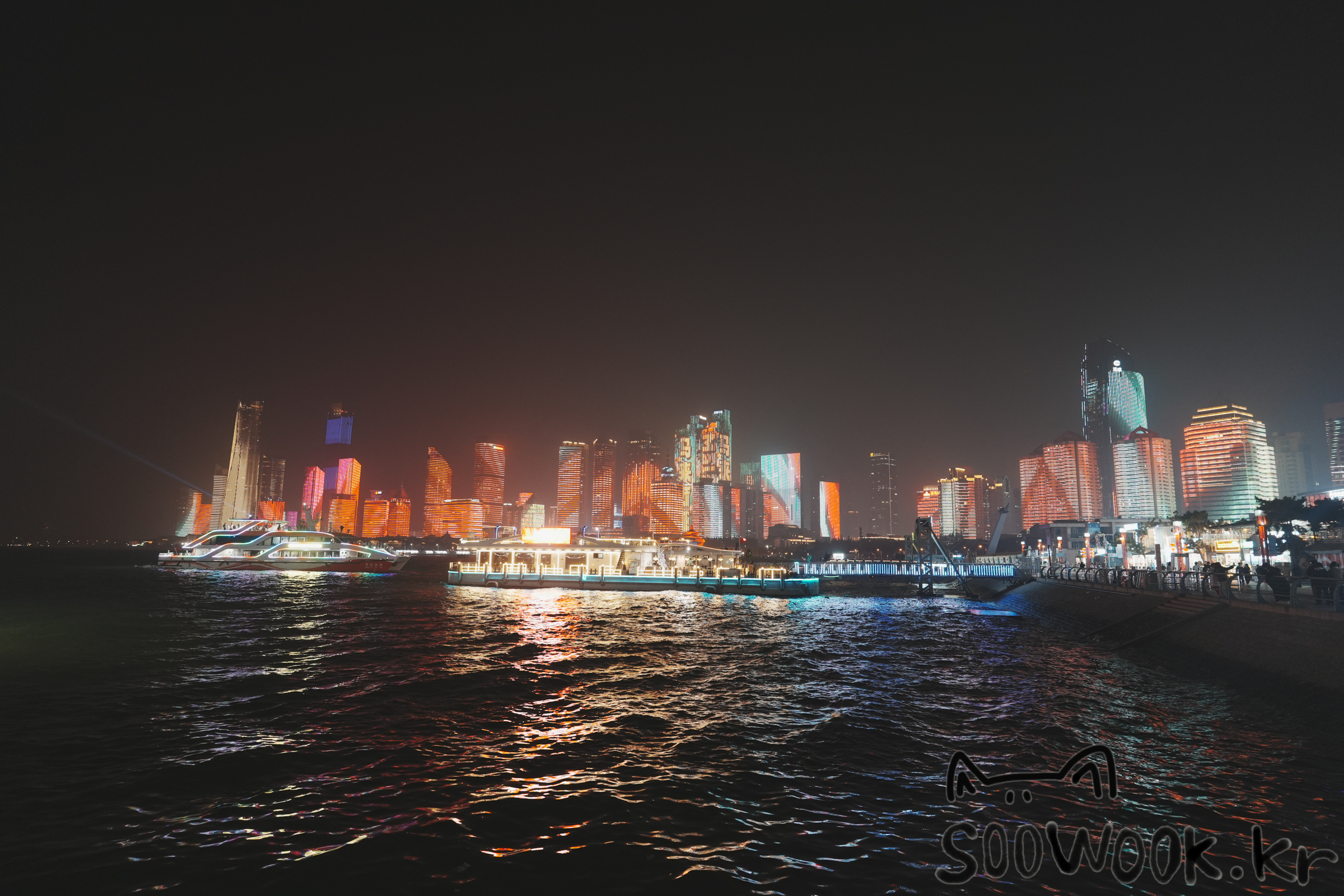 조명쇼가 시작되면 유람선들도 출발 한다. 선상에서 보고 싶은 분들은 유람선을 이용하면 된다.
