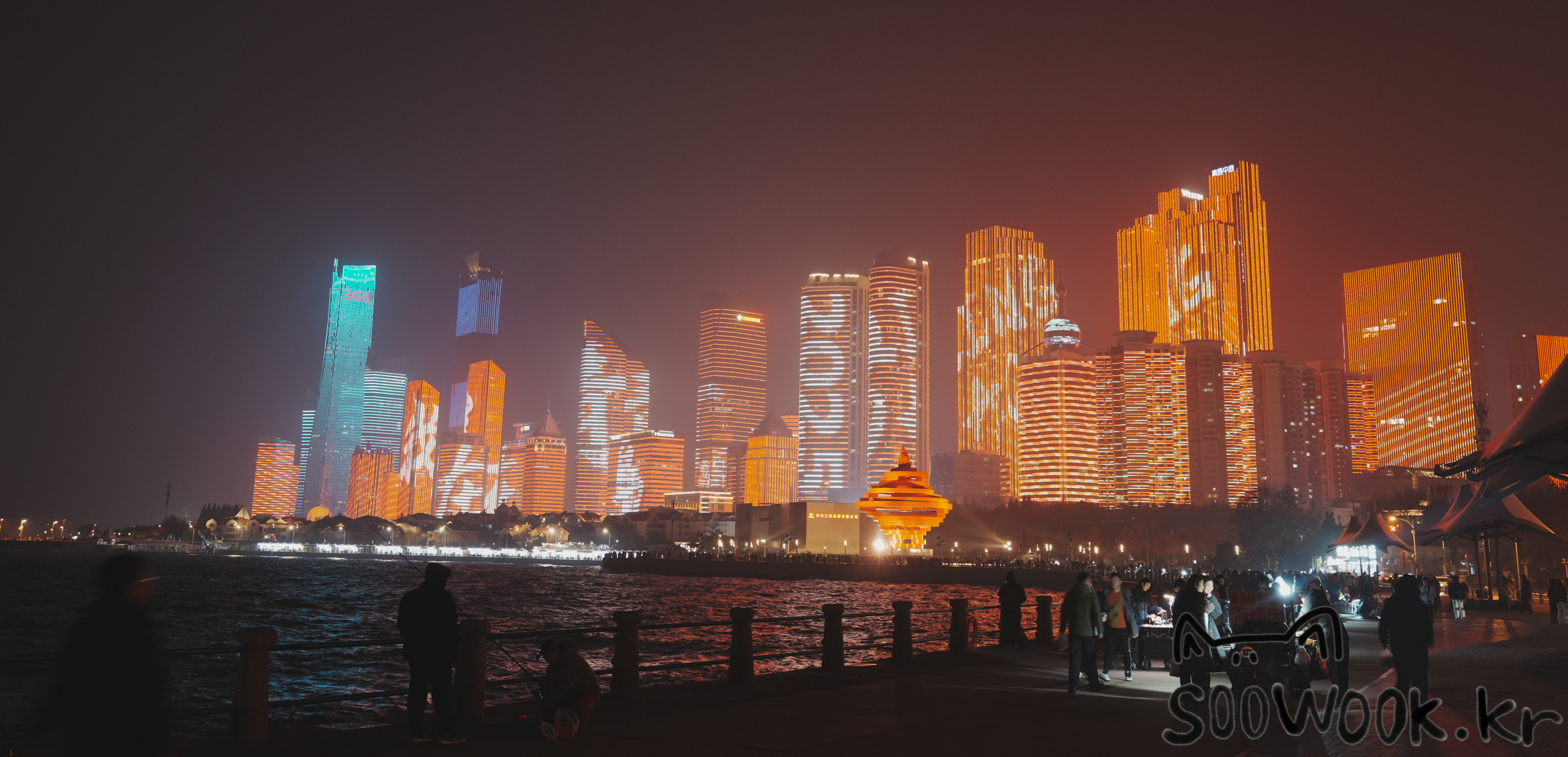 어느정도 시간이 되면 뒤에 있는 건물들이 조명쇼를 시작한다.