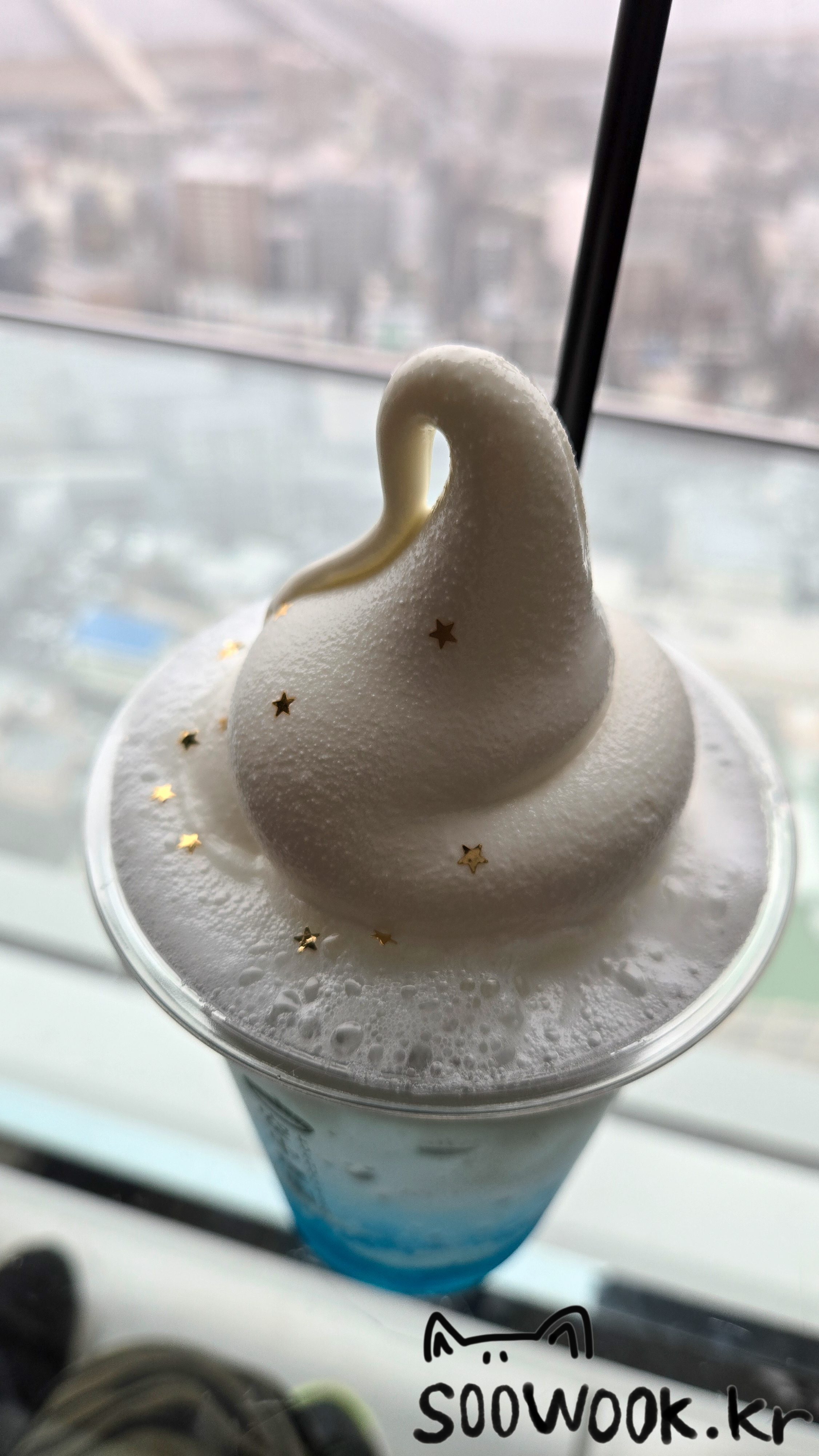 저 푸른 음료는 특별한맛은 아니다 사진은 잘나오는 음료이다. 맛은 그냥 기본 맛이다.