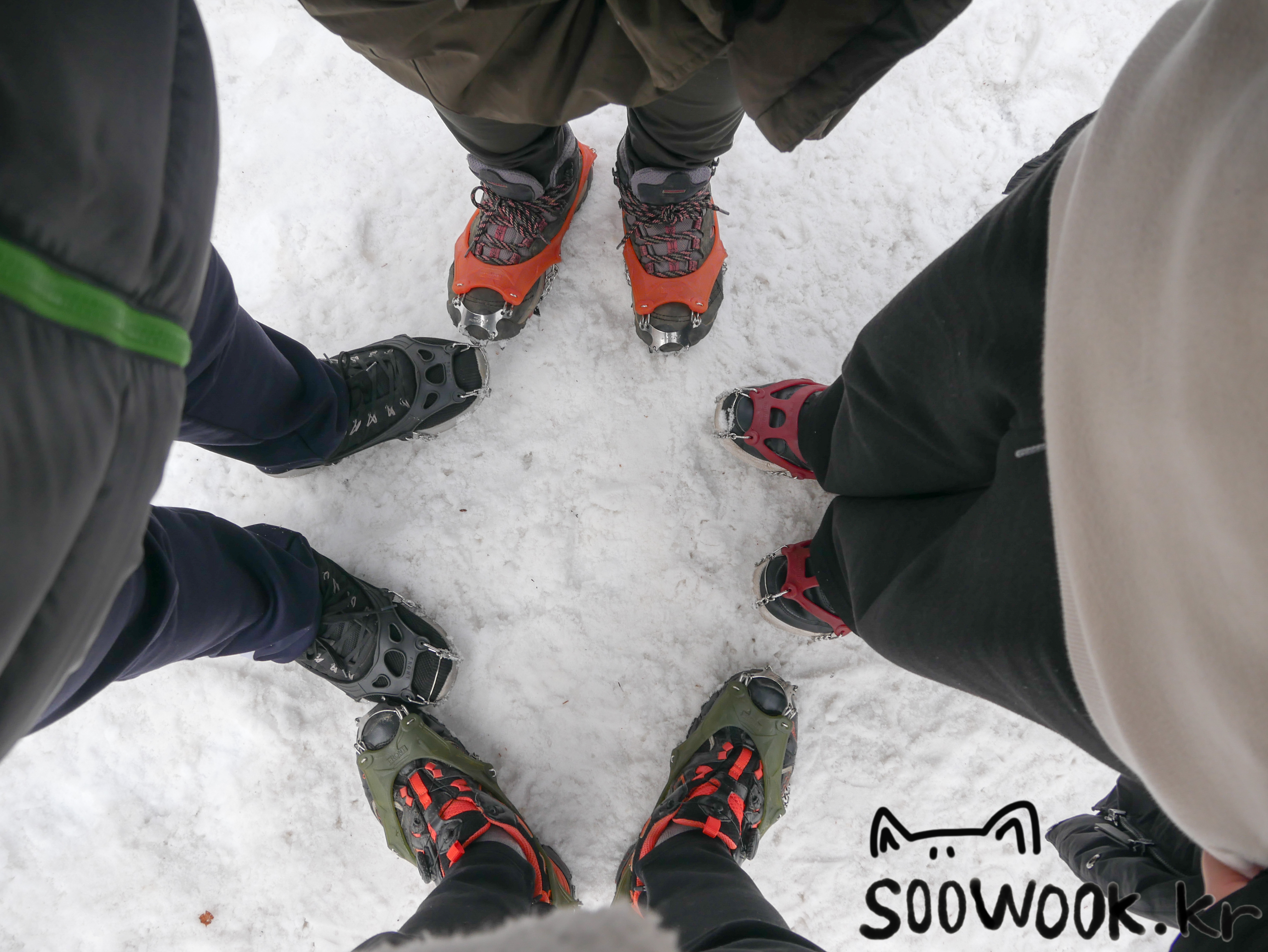 미끄러우니 아이젠을 사용하시라고 안내가 나오고 있었다.