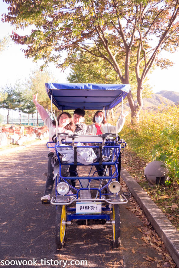 덤으로 유원지 안에 있는 가족 자전거를 대여해서 이용했다.