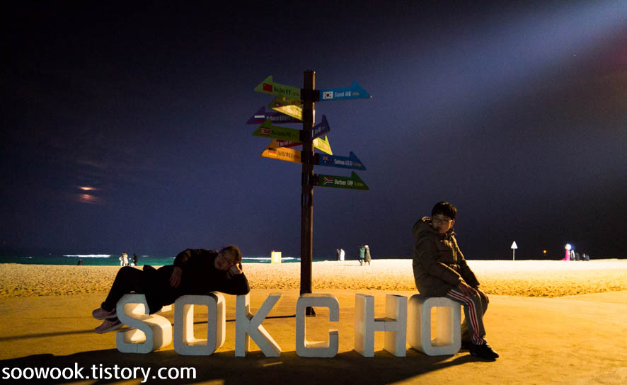 다 먹고 나니 배도 부르고 하늘도 어두워져서 모할까 하다가 속초 해수욕장으로 향했다.