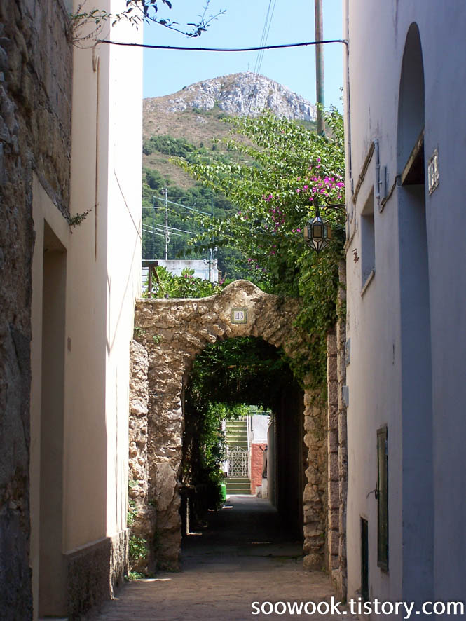기억이 오래되엇 잘 모르겠지만 나폴리 항구로 가서 배를 타고 들어가는 경로였다.