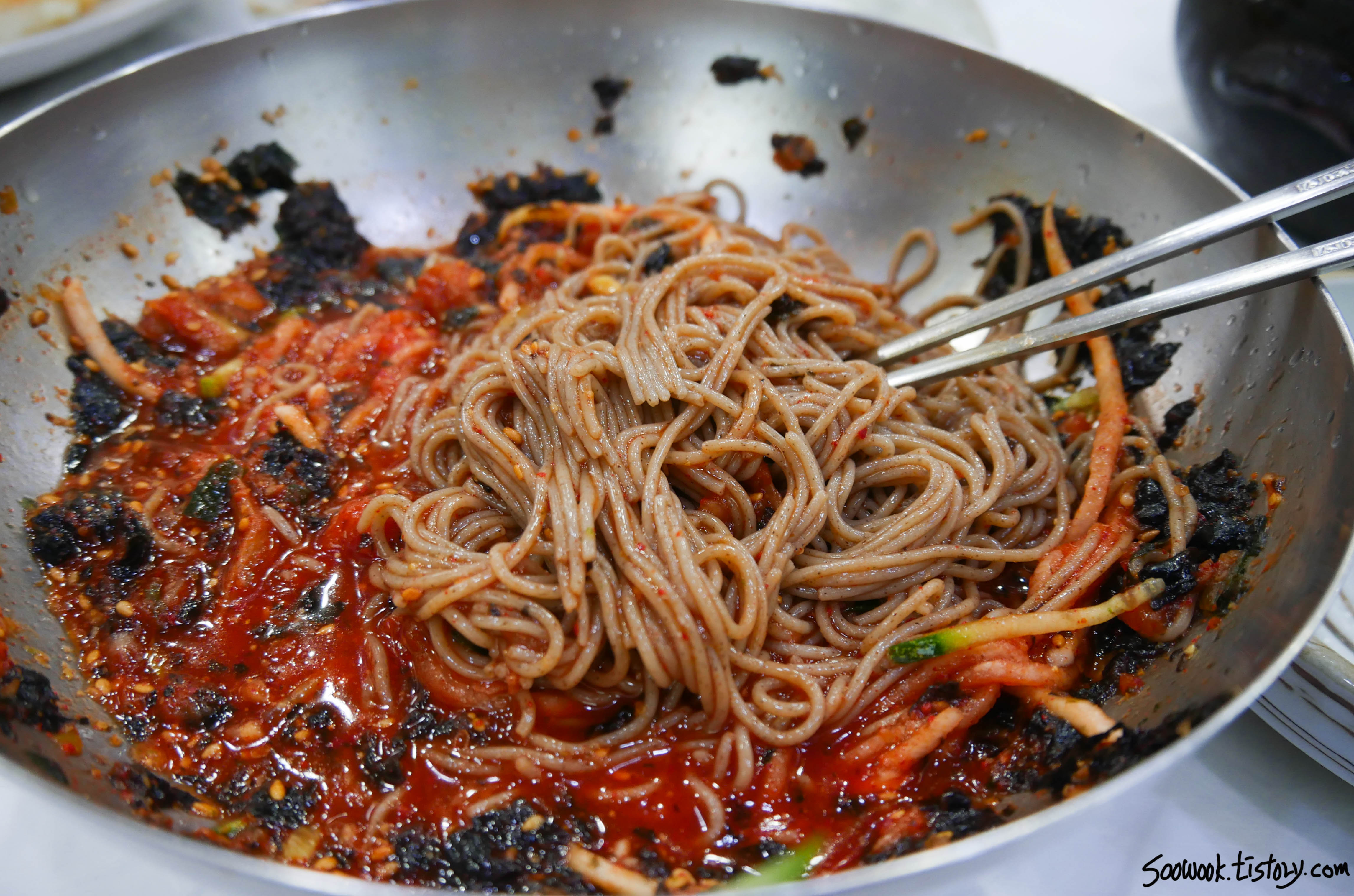 감자전 하고 회막국수를 먹었다.