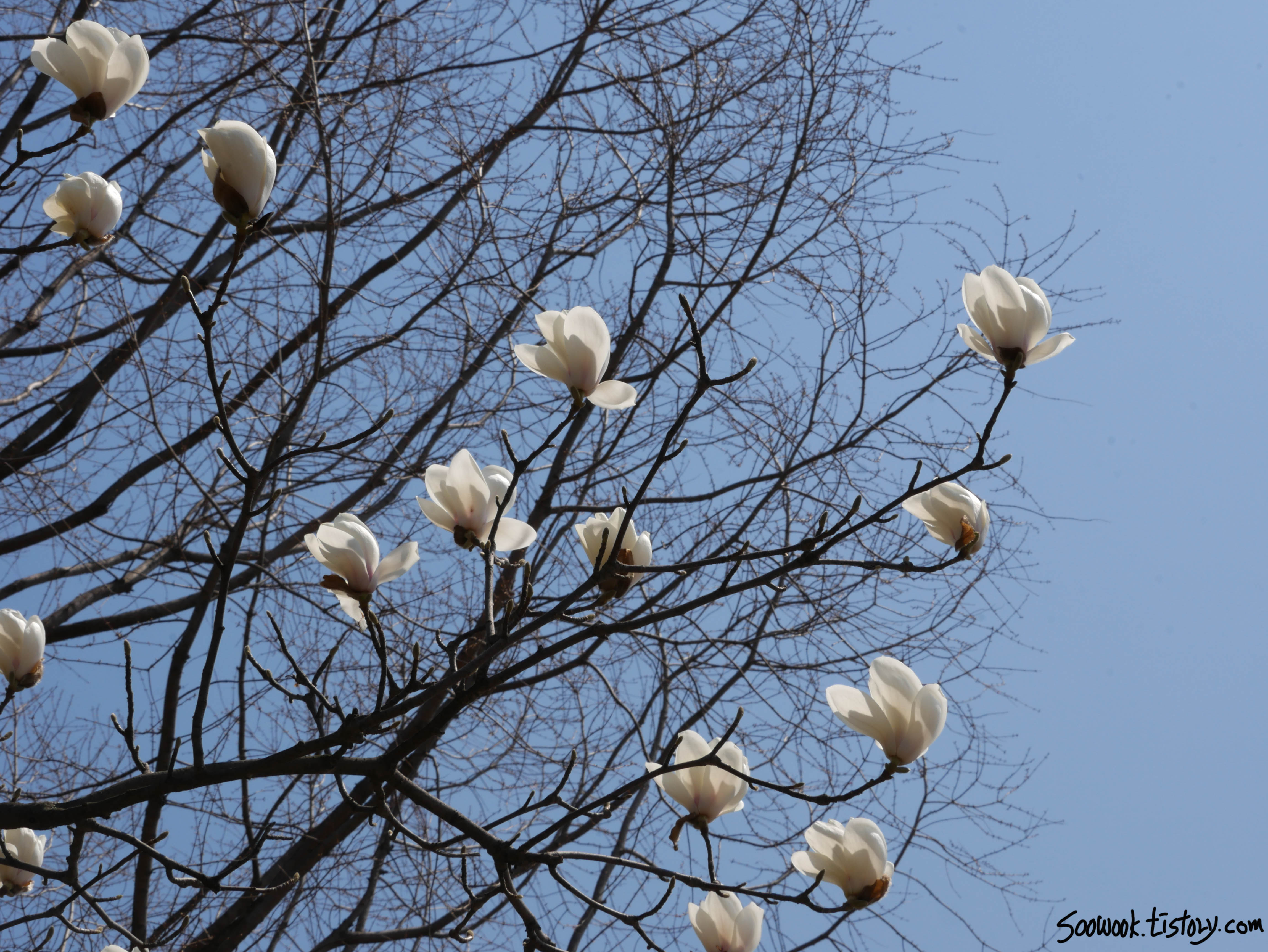 목련이 움트트하면서 활짝 필려고 한다.