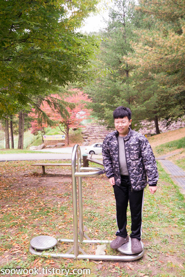 단순한 운동기구에서도 재미있게 논다.