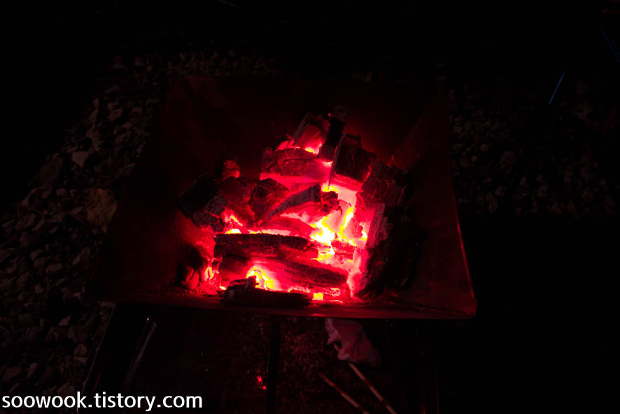 안정된 숯불을 보는것은 캠핑은 즐거움이다.