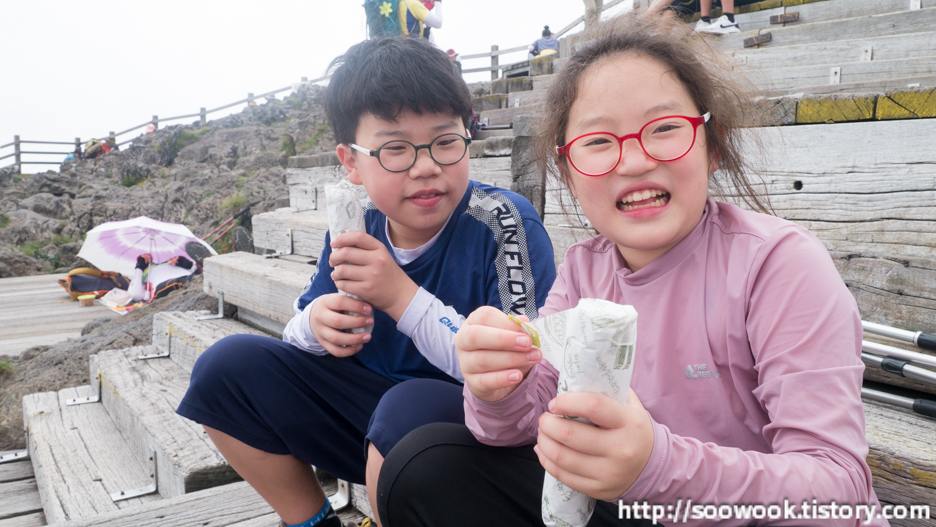 내려오다가 간식 강탈 후 체력이 좋은 뀨뀨하고 사라오름도 다녀오고,