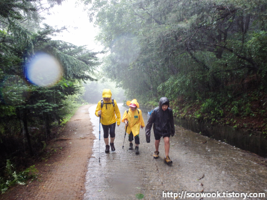 출발할 때는 비가 그다지 많이 오지 않았는데, 죽령 대피소 도착을 하니 비가 대박으로 오고 있었다.