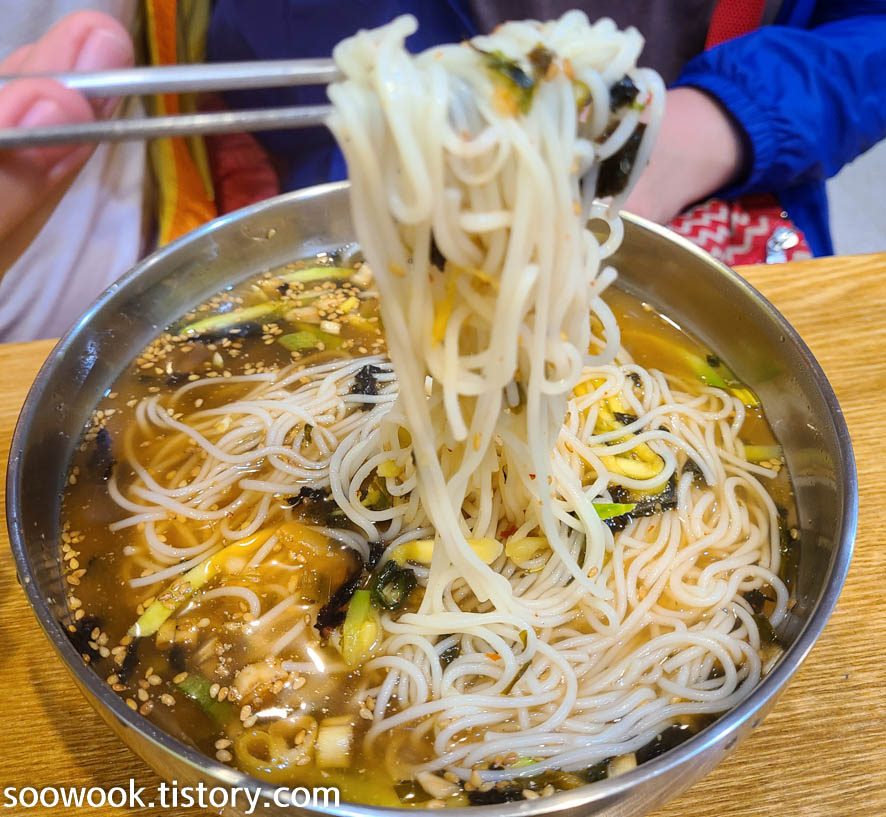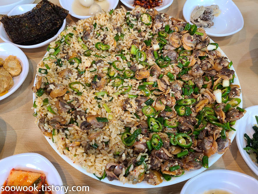 맛집으로 알고 있는 엄지네 포장마차로 가서 꼬막 비빔밥을 먹었다.